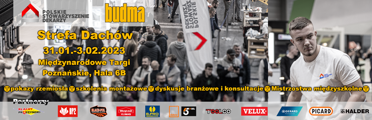 Spotkajmy się na targach BUDMA 2023 w grupie fachowców, którzy chcą poszerzać swoją wiedzę i wymieniać doświadczeniami. POLSKIE STOWARSZYSZENIE DEKARZY, hala 6B