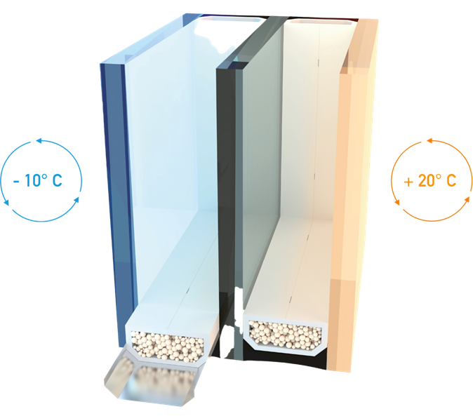 nowa ramka dystansowa w klasie średniej. Aluminiowa bariera gazoszczelna zapewnia zabezpieczenie przed utratą gazu oraz przed przedostawaniem się wilgoci z zewnątrz. Dzięki tym właściwościom wydłuża ona maksymalnie żywotność okna z szybą zespoloną oraz redukuje na stałe koszty ogrzewania.