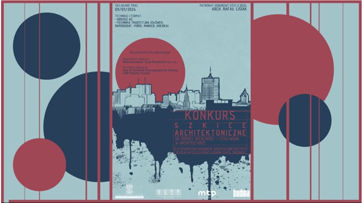 Już 31 stycznia 2024 odbędzie się rozstrzygnięcie konkursu „Szkice Architektoniczne”, którego organizatorem są Międzynarodowe Targi Poznańskie, a partnerami Izba Architektów RP oraz SARP Oddział Poznań. Hasło przewodnie tegorocznej odsłony projektu to: „Do źródeł witalności - czyli woda w architekturze”. Konkurs przeznaczony był dla studentów kierunków architektonicznych oraz uczniów szkół średnich.